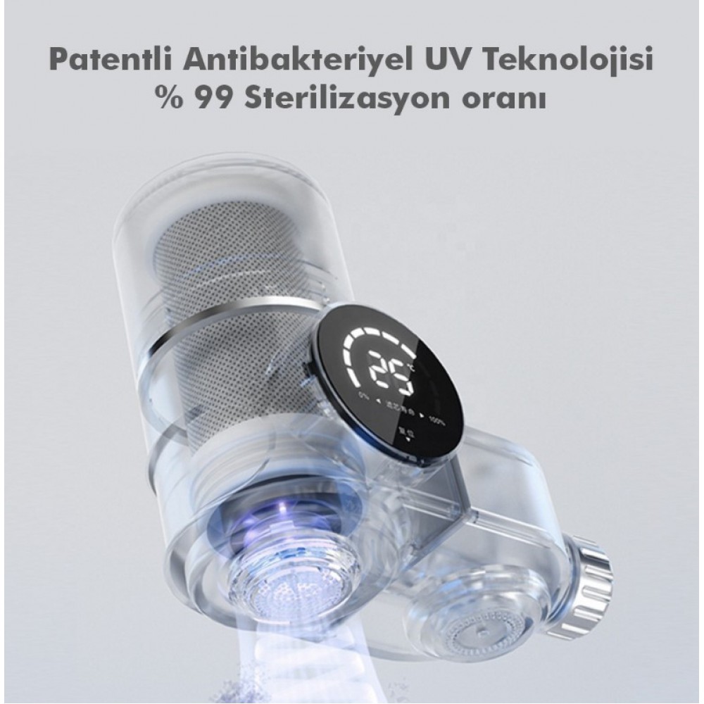 Musluğa monte dijital ekranlı su filtresi, patentli antibakteriyel UV teknolojisine sahip olup,